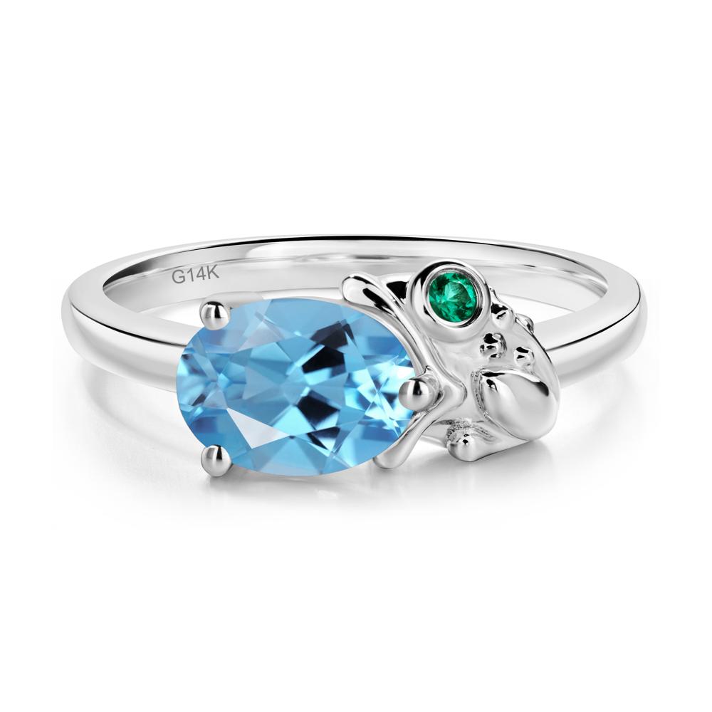 Von der Natur inspirierter Kröte-Ring mit Schweizer Blautopas und Smaragd