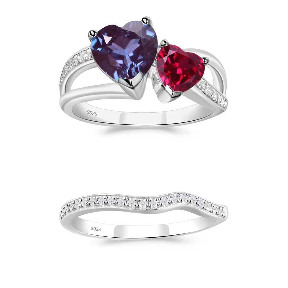- Herkunft: Im Labor hergestellt (Alexandrit) und im Labor hergestellt (Rubin)