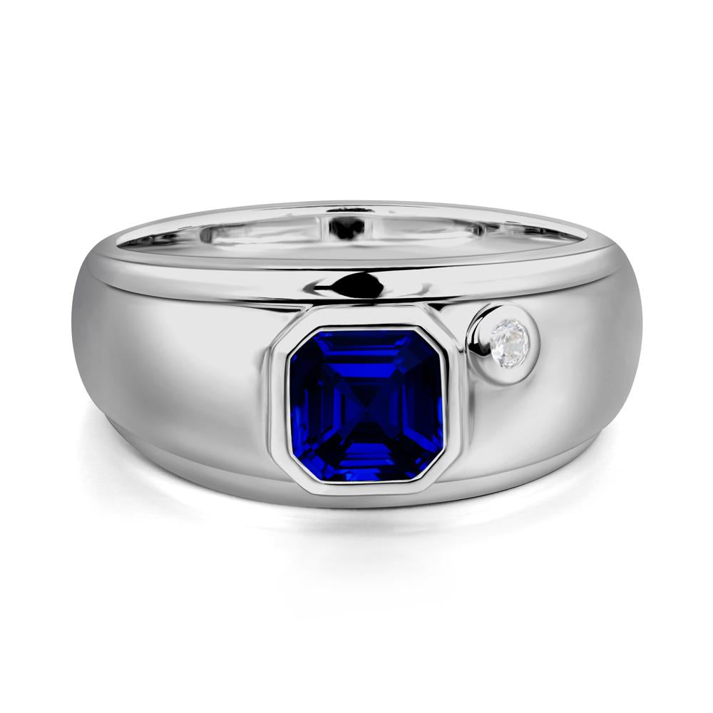 Dieses Design, bei dem ein Labors aphir mit einer Lünette mit einem bescheideneren Stein kombiniert wird, fängt die Essenz der doppelten Natur des Lebens ein: lebendige Errungenschaften und die subtilen Erfahrungen, die sie bereichern. Es passt zu dem Mann, der in seinem persönlichen Stil und seiner Lebensphilosophie Wert auf Tiefe und Perspektive legt.