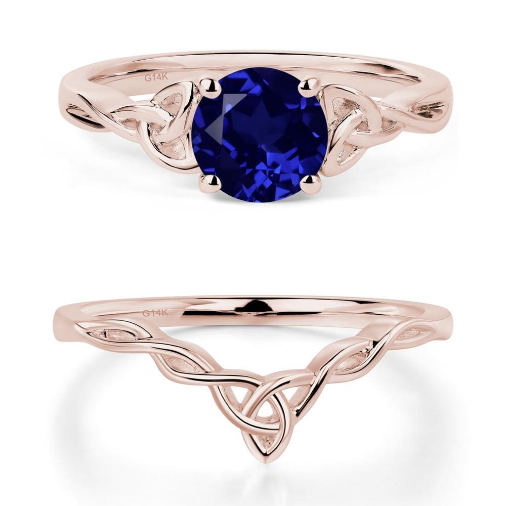 Dieser keltische Ring mit Laborsaphir besticht durch seinen zentralen Laborsaphir im Rundschliff, der anmutig in einem traditionellen keltischen Knotendesign gehalten ist, das ewige Liebe und Verbundenheit symbolisiert.