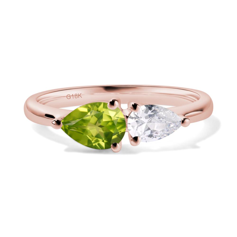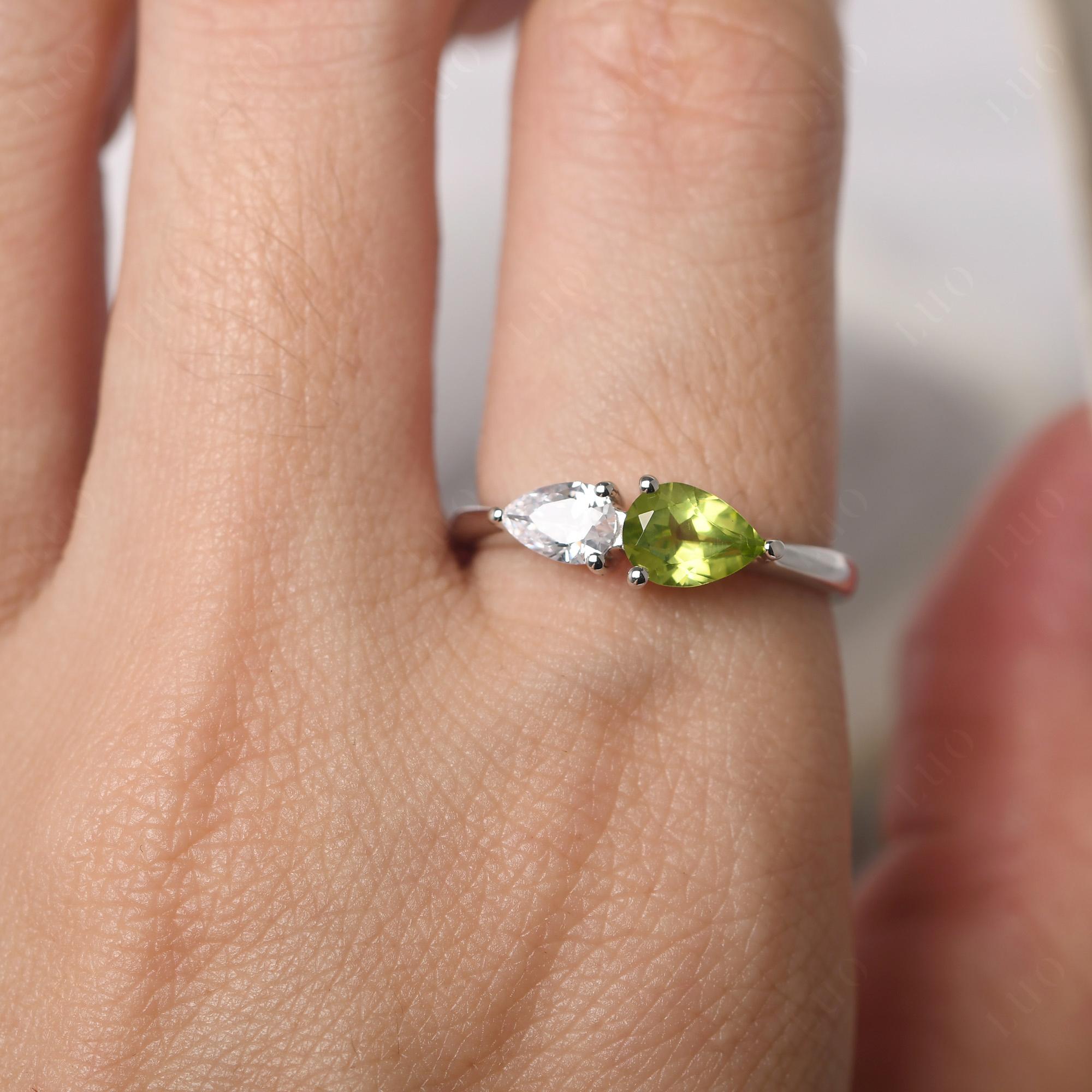 Anillo de circonita cúbica y peridoto East West Pear