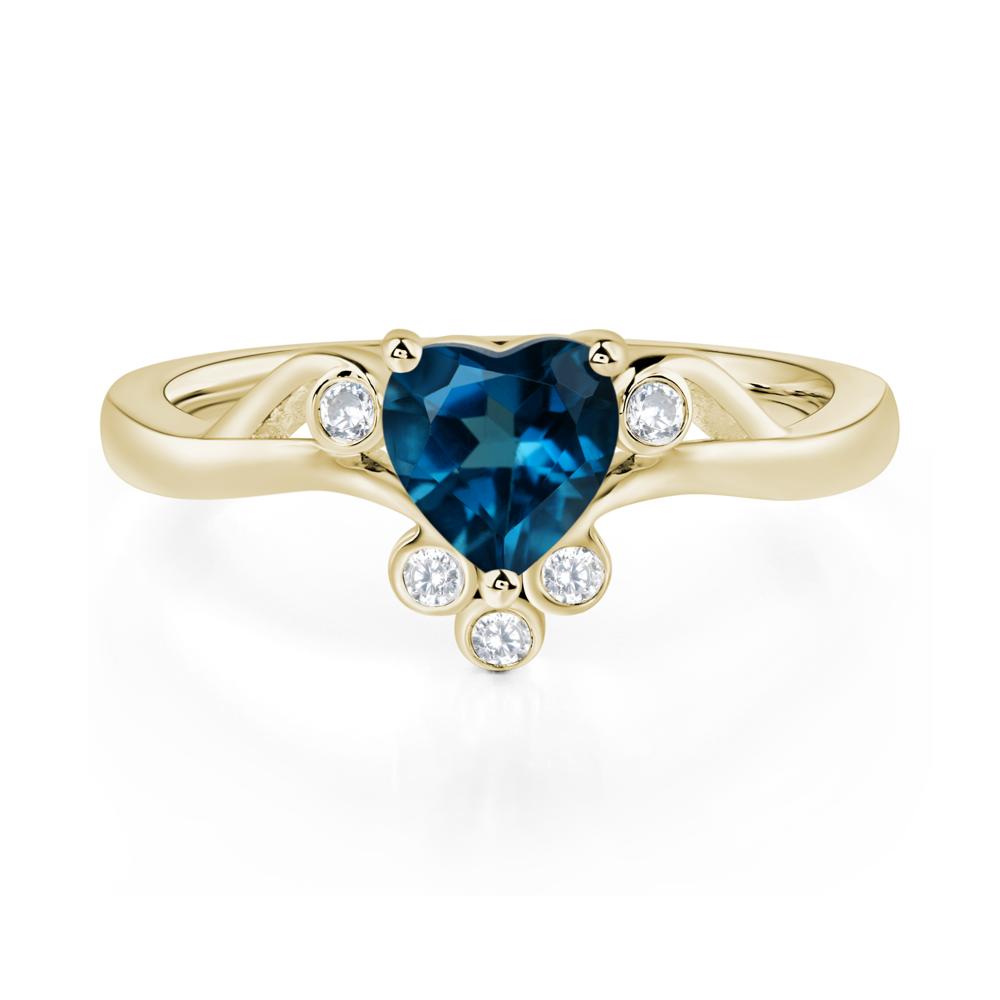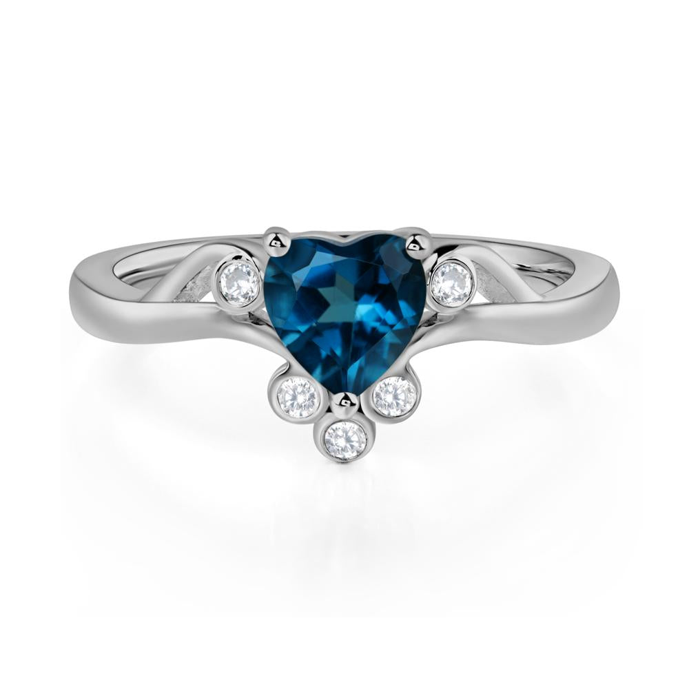 Este exquisito anillo presenta un toque romántico, con su topacio azul londinense en forma de corazón que sugiere amor y devoción. Las curvas onduladas de la banda añaden un toque de elegancia y modernidad, mientras que la artesanía en general habla de un diseño atemporal.