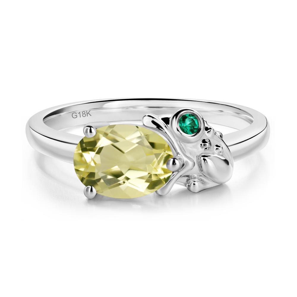 Nature Inspired Toad Lemon Quartz and Emerald Ring