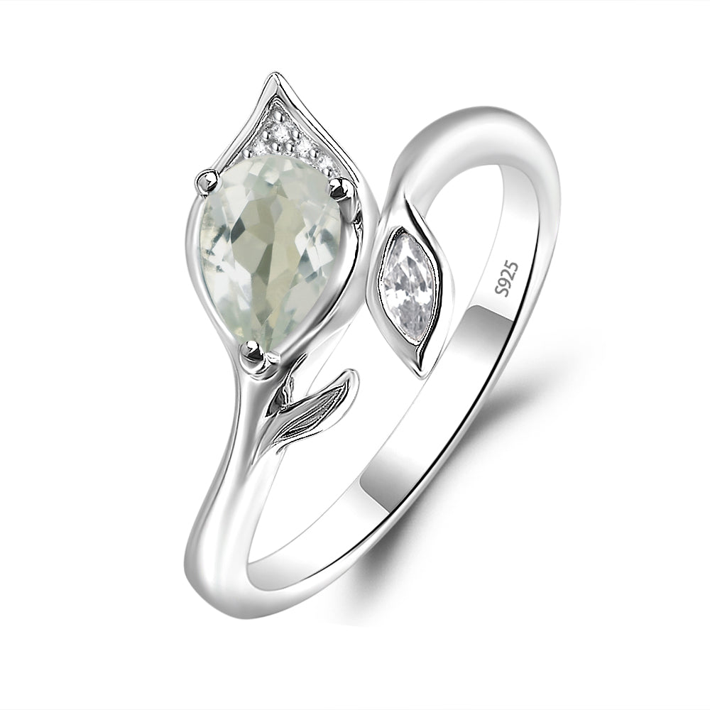 Pear Shaped Green Amethyst Virgo Zodiac Bypass Ring